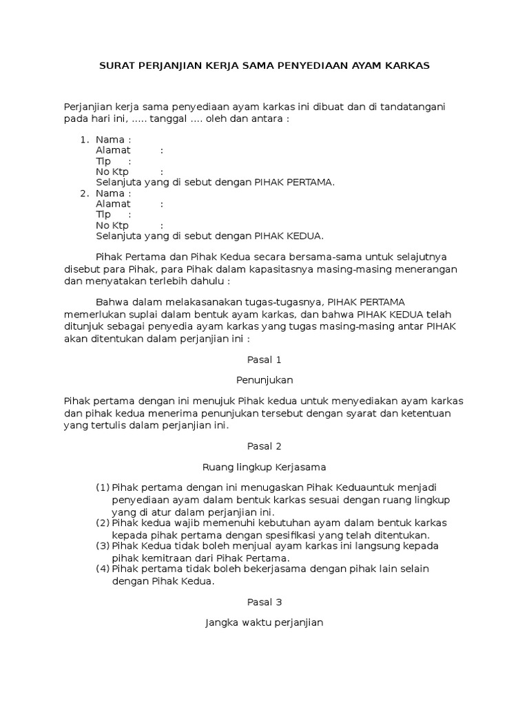 Surat kontrak pada umumnya tidak abadi atau bersifat sementara selama perjanjian masih berlangsung sesuai kesepakatan kedua belah pihak. Berdasarkan ketentuan mengenai syarat sahnya suatu perjanjian tersebut, tidak ada satupun syarat dalam pasal 1320 kuh perdata yang mengharuskan suatu perjanjian dibuat secara tertulis. Supplier terbagi menjadi dua bagian yaitu supplier barang dan supplier jasa. Download contoh surat perjanjian kerjasama supplier doc pdf (12.00 mb) sampdf unduh contoh surat perjanjian kerjasama supplier doc pdf secara gratis di sampdf. Itulah contoh surat perjanjian kerjasama supplier sayuran yang dapat admin kumpulkan.